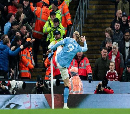 英超第13轮,曼城将主场对阵利兹联,哈兰德已连续5个英超主场取得进球,若此役对阵利兹联破门,哈兰德将达成英超百球里程碑。